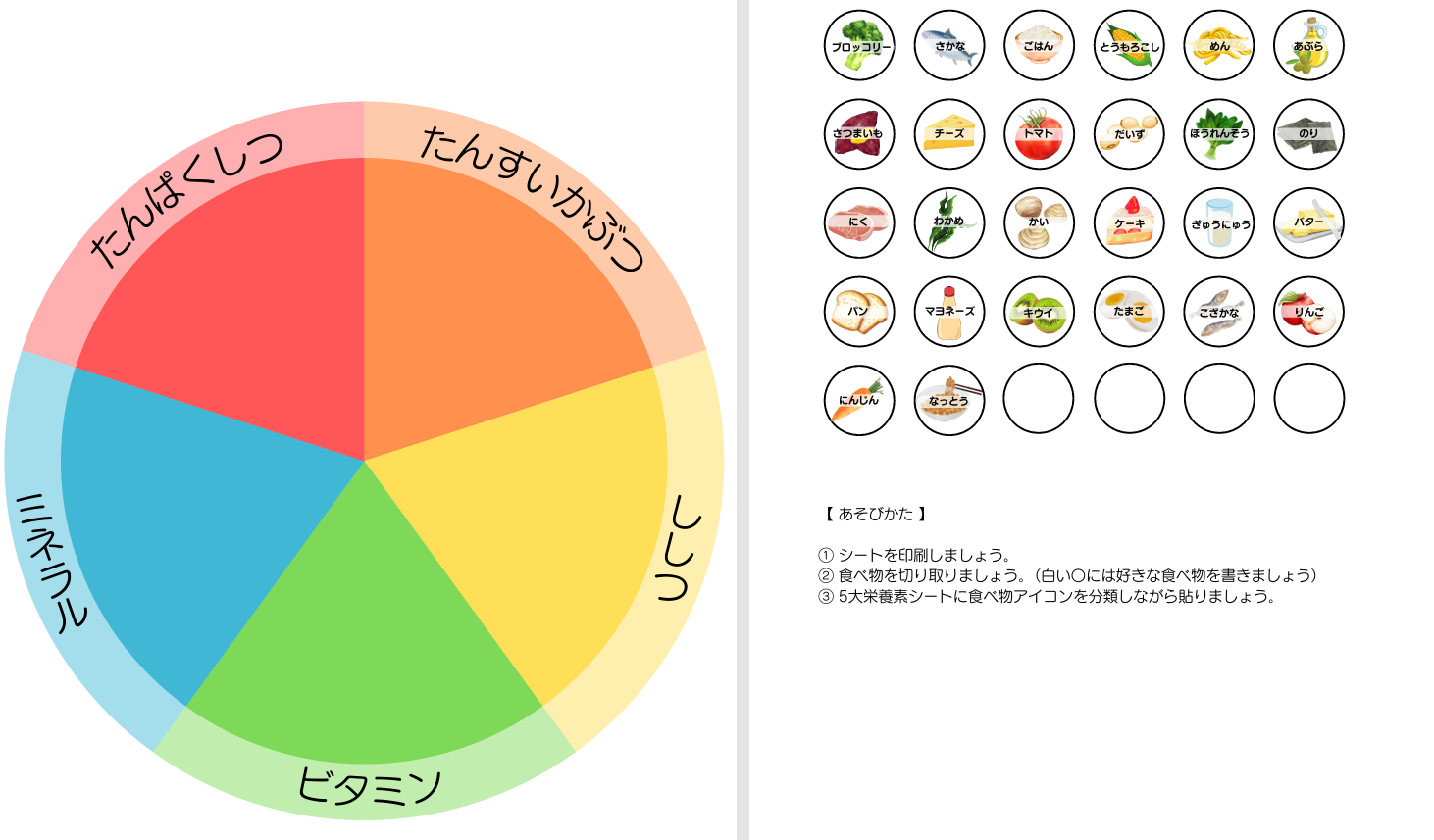 五大栄養素ワークシート